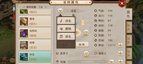 2、进到小宠物页面之后,大家可以看到有许多宝宝,随后我们要挑选我们要放生的宝宝。