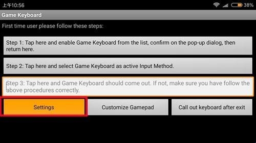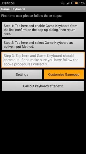 第五步:点击手机上面的返回按钮,回到Game Keyboard的主页,点击右下角的Customize Gamepad。