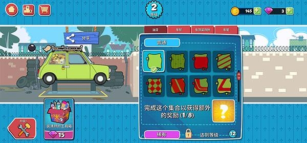 3.用漆料、车轱辘、车顶装饰等配件订制憨豆先生的标志性翠绿色复古车,让这个迷你车更为霸气,并收集特殊奖励。