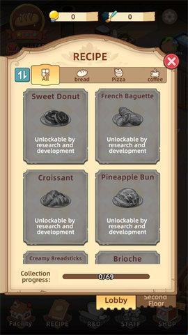 4.不同种类的面包菜谱等候玩家开发设计,伴随着游戏的高速发展,更多隐藏内容要被开启。
