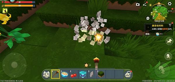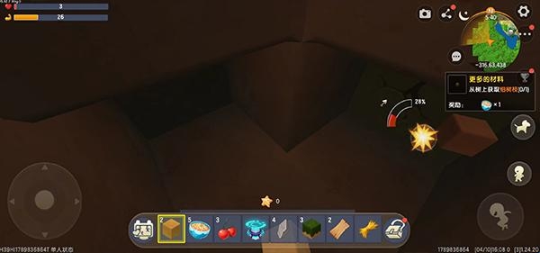 5、寻找原材料以后,将游戏角度移到石板上,随后长按屏幕石块,就可以自动获得材料了。