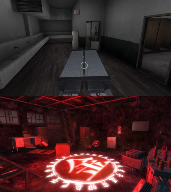 9、随后前去2F「体育运动库房」东侧的过道开启红衣女鬼吊死的剧情。
