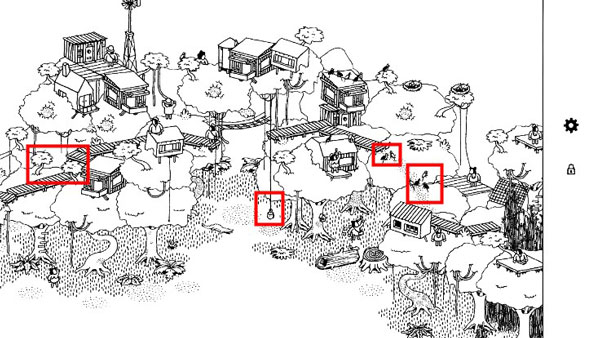 1.冒险家加兰、大蟒、小猴子琦琦(左边树)、白香蕉苹果(右侧树枝香蕉苹果)