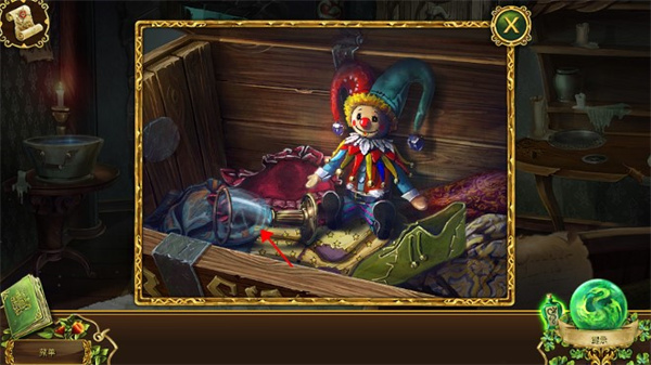 2、点一下角落的小箱子,将小箱子里的脏物移走,我们可以得到一个高脚红酒杯。