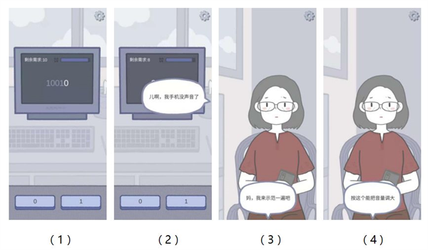 在出现下图的会话,并等会话完成后,获知妈妈手机忽然并没有声音想要你去教她调回来,这时手机上向左侧歪斜会有母亲跟你的会话。