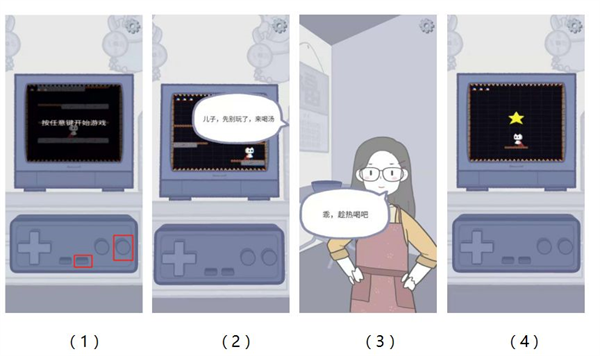 进到章节目录后,滑动屏幕中的蓝牙手柄里的运行命令即可开始游戏(十字键上下掌握方向,白框横键暂停游戏,白框圆键弹跳),当一个新的提示框出现的时候,可点击暂停游戏键,随后手机上向左侧歪斜会看见妈妈跟你的会话。