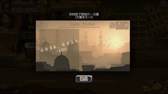 疯狂点击鼠标键制胜以后会得到KING的明信片,能量+1.