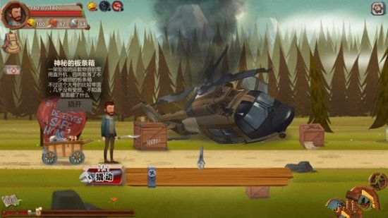 走动的时候会碰到从高空坠落直升飞机,主人公还会讲话提醒玩家,直升飞机上有许多小箱子可以促进一波原材料。有一个名称是【神秘板条箱】的小箱子,打开和正常小箱子一样。