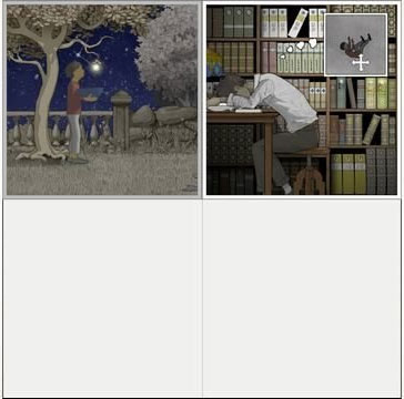 Gorogoa的情节设计均为原创,游戏中有多个细节丰富的插画格子,玩家可按照自己的想法通过移动和组合插画格子来解谜。操作极为简单,内容却复杂有趣。