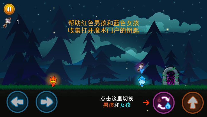 1. 玩家必须控制冰与火人通过关卡。这里的每一个关卡都是一次很好的尝试;