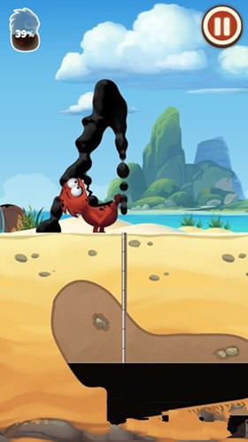 2. 然而,露天石油资源正濒临枯竭。玩家要做的就是帮助小怪物利用管道开采地下石油;