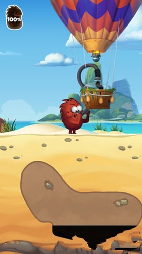屏幕左上角会显示小怪物吸收的油量。当收集满后,热气球就会出现。我们可以走过去把油吐出来,这样就完成了任务。
