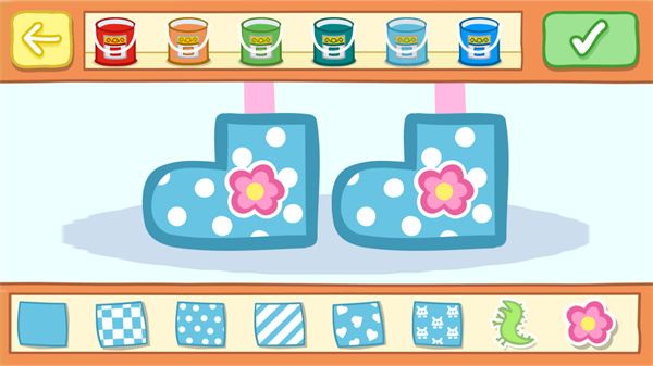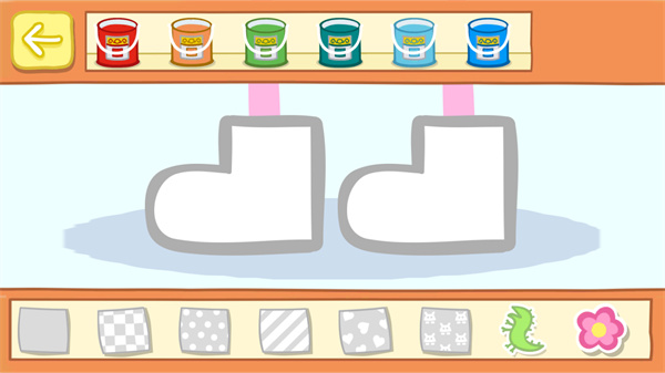 3.给小猪佩奇选一双好看的靴子,上面有颜色,下面有图案和图案;