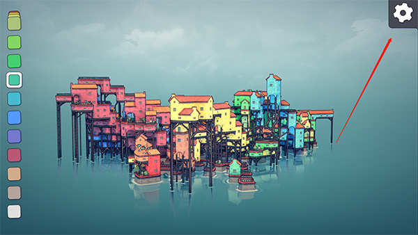 1.首先下载本站带来的Town Jenga正式版,点击右上角的齿轮。