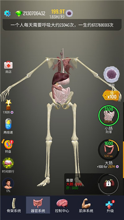 2.从第一个骨骼开始解锁。小编钻石无限,所以直接用钻石购买100T细胞开始培养;