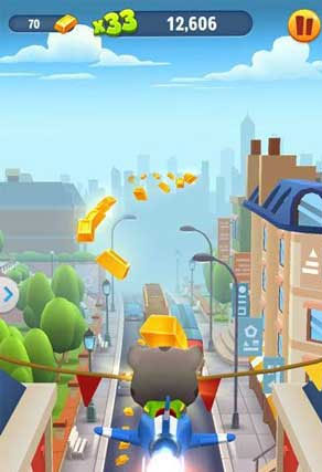 “飞机”可能是《汤姆跑酷2》中最受欢迎的道具了,玩家拿起这个道具后,可以驾驶飞机飞上天空一段时间,而不必担心撞到障碍物。同时,飞行路径上会出现大量金条。只要操作得当,你就能在这段“飞翔”的时光里赚到不少钱。需要注意的是,飞机的飞行速度比玩家在地面的跑酷速度要快很多。如果手速不够快,你可能会错过黄金机会。因此,如果你想成为一名合格的飞行员,就必须努力提高自己的变道技术。