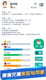 1.一款休闲生活模拟游戏。从婴儿到死亡,你的选择将决定你的未来。