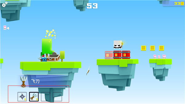 4、飞刀:直线发射飞刀。升级增加飞刀数量,最多5把。