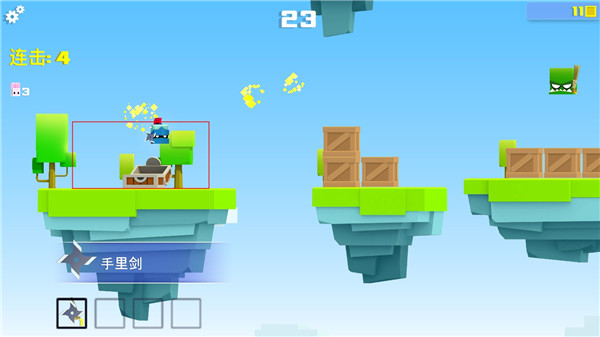 6.火箭:直线发射火箭。 TNT爆炸时会直接引爆。升级增加火箭数量,初始3个(连续跳3次再跳不会发射火箭)