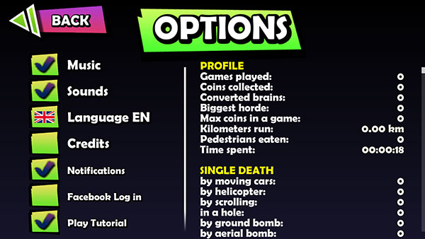 僵尸尖叫是一款非常有趣的休闲跑酷游戏。游戏设定在一个充满僵尸的后世界末日世界。玩家不是控制单个僵尸,而是带领一大群僵尸奔跑、破坏和吞噬。游戏采用无尽跑酷模式。玩家使用简单的手势控制并点击屏幕使僵尸跳跃、攻击障碍物、吃掉行人或将更多人类变成僵尸。玩家的目标是让僵尸部落尽可能长时间地存活,吃掉更多的人类并在逃亡中收集金币。