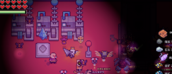 游戏界面左上角的绿色条代表角色当前的饥饿值,红色的心代表角色当前的生命值。