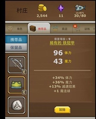 防御只是小菜一碟,主要是体力和魔法。自然是数值越高越好。这里我就不详细说了。上图中,这是一把黄色的武器。黄色武器的好处是,通过强化,可以增加额外的属性。比如体力、魔力、减速效果、魔法球。颜色分为白色(无附加属性、蓝色、黄色等)。符文石可以镶嵌在武器或者盔甲上,还可以增加一些额外的属性。