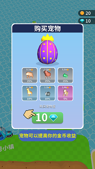 6.游戏中还有机会挖到稀有钻石。钻石可以用来购买宠物,提高金币的兑换率。