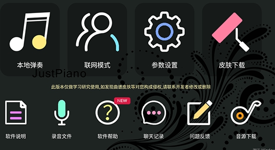 游戏分为五种模式:新手模式、游戏模式、自由模式、钢琴键盘模式和欣赏模式。
