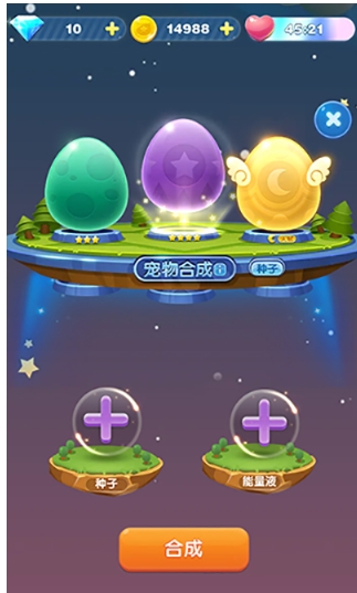 2.通过宠物种子+能量液合成宠物;