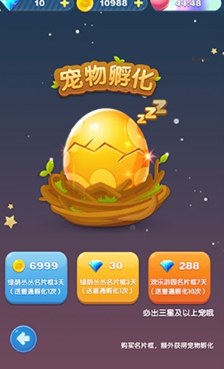 1、花费金币、钻石孵化宠物;