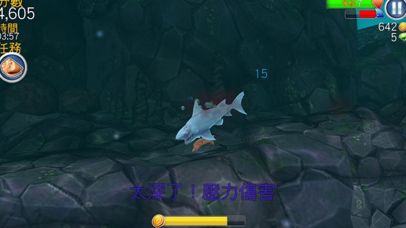 连续使用加速会导致鲨鱼的饥饿感增加。玩家一定要注意两者的关系,不要轻易加速而浪费鲨鱼的能量。