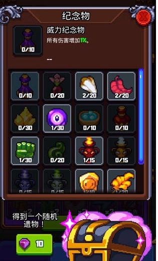4、纪念物纪念品是游戏中比较创新的元素。它们是通过10 颗钻石绘制的。他们每次都能给你不错的属性加成,但是会考验你的运气。