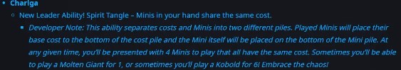 一般情况下,游戏中只有一张卡牌队列,卡牌的费用作为卡牌的一项属性,与卡牌绑定。但卡尔加的领导者能力是创建一个成本队列,将卡牌成本从卡牌属性中剥离出来,形成一个单独的队列。