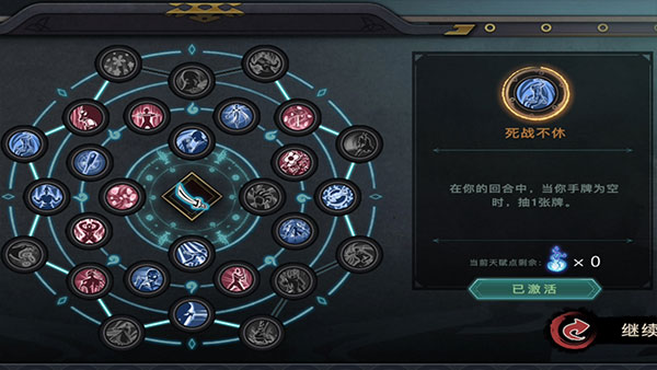 游戏的天赋系统也是一个创新。其他类似的游戏一般都是通过在战斗开始或者途中获得奖励来给自己加buff。不过,这款游戏不仅选择了战斗开始时的指挥旗(相当于整个战斗中只能使用3次的强大主动技能)和探索过程中遇到的宝藏(buff),还加入了天赋盘系统。这四个人物有一套“专业人才”和一套共同的“通用人才”。
