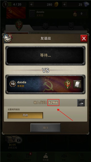 2.在这里您可以输入好友分享的进入码,点击进入。您也可以点击【开始友谊战】自行创建房间。