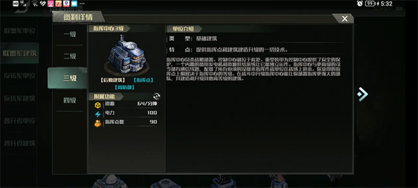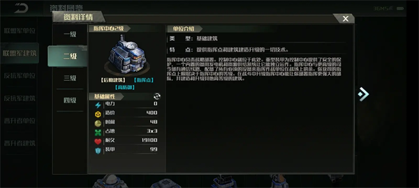 1.指挥中心:玩家的基地。在中国服务器中,如果玩家的基地被摧毁,就意味着失败,所以生命和护甲非常重要。