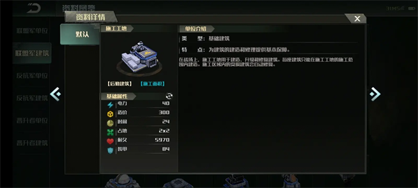 本文致力于统计所有建筑物的详细数据。联盟军和上升者的建筑数据基本相同,所以我们把它们放在一起说抵抗军,因为建筑数据存在一些差异。它们是单独列出的。
