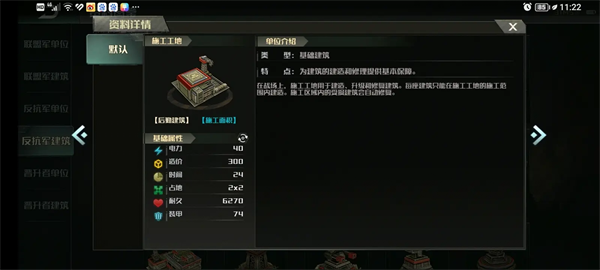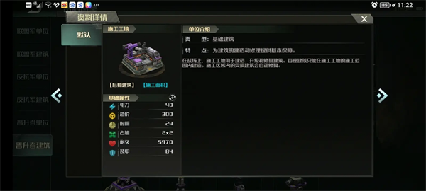解锁建筑:建筑工地限制2、突击车工厂限制2、特种车辆工厂限制2、空军工厂限制2、造船厂限制2、基础防御塔限制3、炮塔限制2、防空塔限制4、海防塔限制3