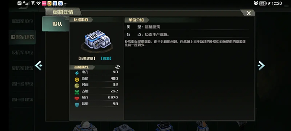 联盟军和飞升补给中心的生命值和护甲值均为:5970生命值,98护甲值