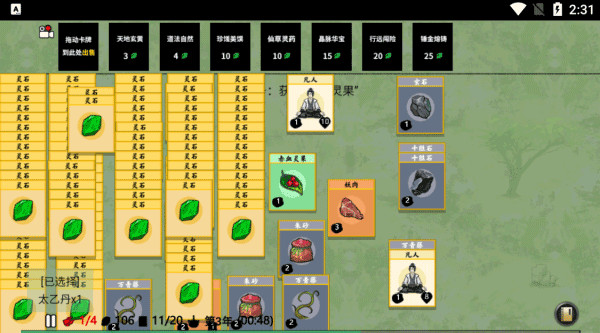 5、丰富有趣的娱乐玩法。放置自己的卡牌,通过各种考验,成功修仙。