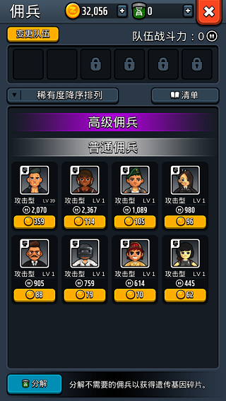 直观的操作方式和畅快的合成手感,收集各种雇佣兵!