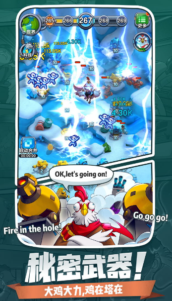 2.独特的放置玩法,让你的角色和装备不断升级,短时间内就能合成属于自己的炮塔;