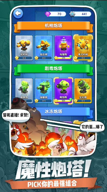 1.各种炮塔轮流战斗,具有不同的能力和效果。合理的组合可以产生神奇的效果。