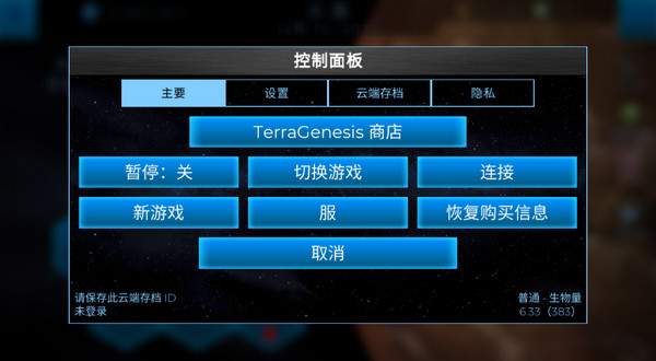 2. 进入行星控制面板。这里是游戏的主要设定等。