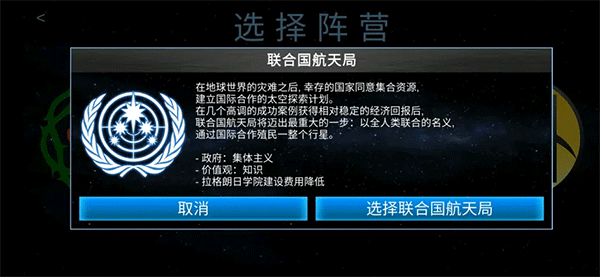 殖民地建造工具- 加入四个星际地区之一,每个地区都有不同的殖民好处