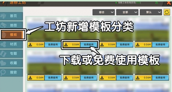 注:模板地图功能将暂时向部分开发者和玩家开放,小伙伴们可以体验下载模板功能。