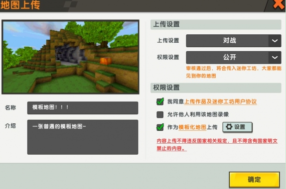 检查完毕后,您的地图将以模板地图的形式上传到迷你工坊,其他好友可以在工坊中以地图模板的形式查看您的地图。
