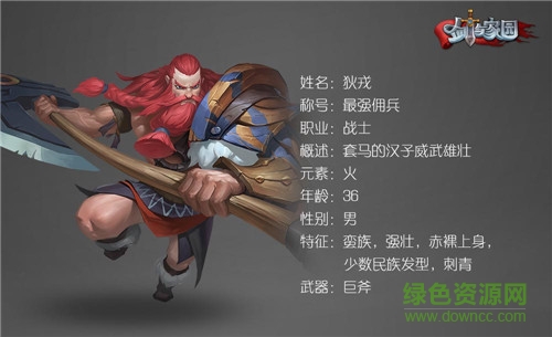 狄戎是传说中人类历史上最强的佣兵。他出生于南方遗迹森林的蛮族之中。他的力量非常强大,可以与棕熊战斗而不会失败。他喜欢挥舞巨大的星岩斧头,将所有敌人砸成肉泥。末日审判之战中,他保护同伴撤退至法师塔,以一敌万,最终身亡。