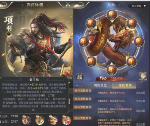 矛兵和近战骑兵以及骑射手之间有两个主要的限制。 1、项羽的“飞枪”和龙脉八件套将有一定概率先攻击优势兵; 2、龙脉6件套装的效果和枪兵自身技能【枪】可以增加对骑兵的伤害。
