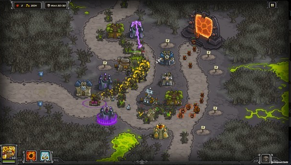 游戏简介《王国保卫战:起源》是一款非常经典的策略塔防游戏。游戏中,当王国受到威胁时,会在道路上放置炮塔或兵营等建筑物来消灭这些攻击怪物。玩家可以建立自己的防线,或者使用法术来降低怪物的生命值。如何防守取决于你的策略和选择。